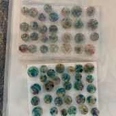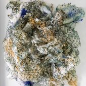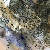 Layered construction, detritus, resin pins with cast plastic detritus used for hanging