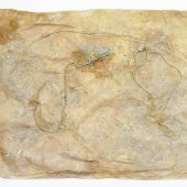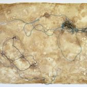 Handmade paper, detritus, wallpaper designed by the artist.