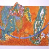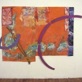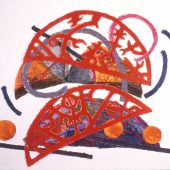 …..With so much movement and color, these abstract pieces seem happy and decorative although they bear a somber message. At the time she was making them, Hall read extensively about the plight of the Haitian refugees. She is fascinated by the region and has sailed……to almost every island in the Caribbean but Haiti…..